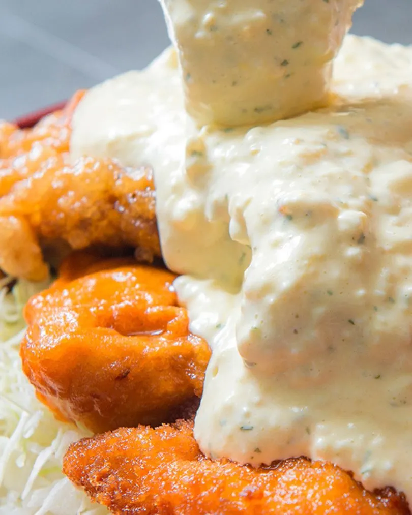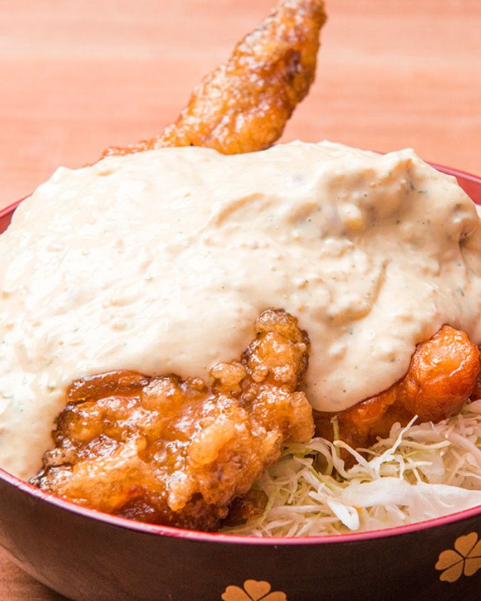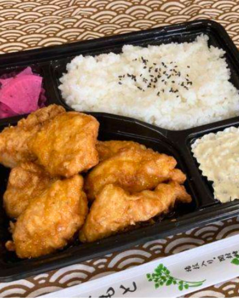当店自慢のチキン南蛮をお弁当にしました!カラっと揚げた鶏肉をくぐらせる甘酢は試行を重ね完成させた自家製です。タルタルソースもあけみちゃん家の特製です。ジューシーで美味しいですよ。 小盛ごはん(200g)1,050円 並盛りごはん(300g)1,160円 中盛りごはん(400g)1,280円 大盛りごはん500g)1,400円